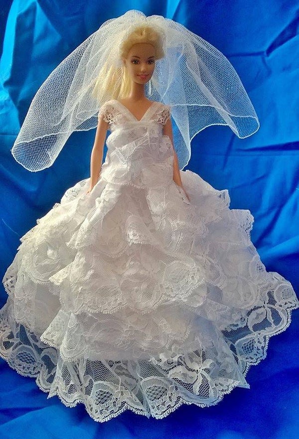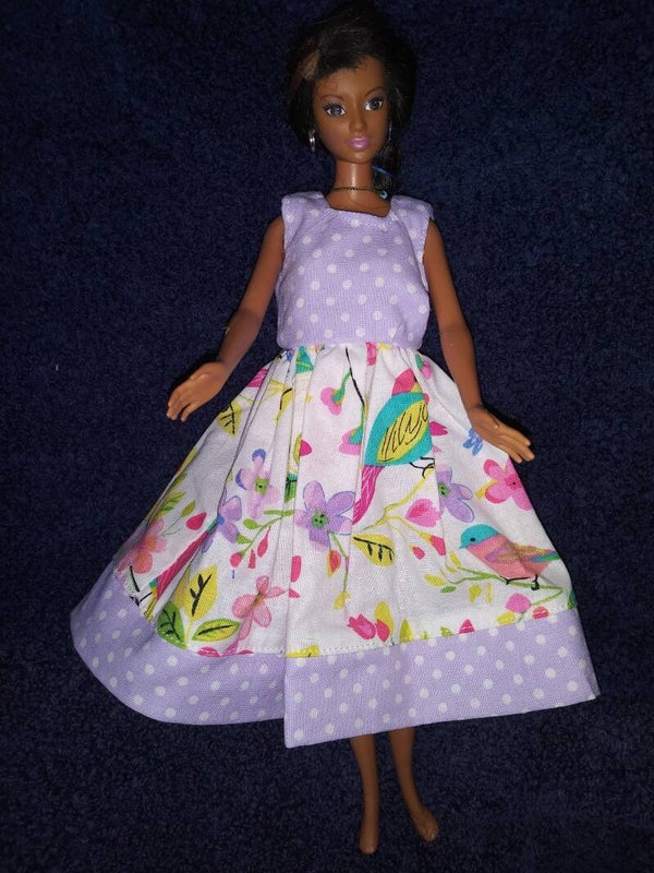 These outfits and dresses fit 11.5" dolls such as barbie and other similar brands. They are made from quality fabrics in a variety of styles and colors. Since there is a high turnover in sales, I only offer Bundle packages of a variety of colors. Bundle A includes: 2 dresses, 1 ballgown, 1 pair of PJs and 1 tutu for $25.00 Bundle B includes: 1 wedding dress with veil, 2 ballgowns, 1 summer dress and 1 pair of PJs for $35.00. Individual wedding ensembles are also available seperately for $18 set. Colors and styles may vary from images shown. Made in USA.